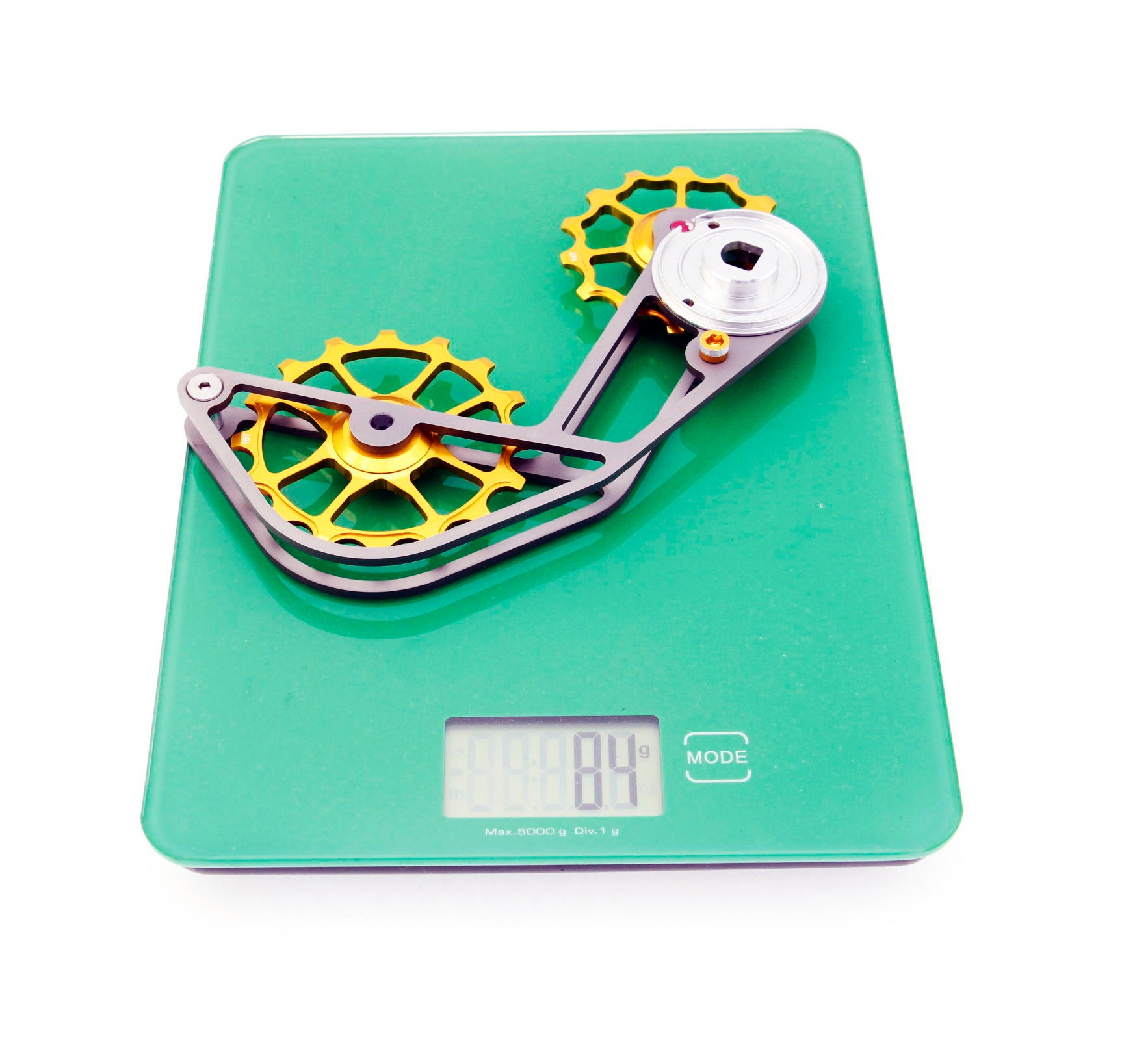 The system consists of Top 14t & Bottom 16t alloy pulley wheels fitted with low friction bearings and a lightweight strong cage made from Titanium material.